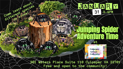 Bring your kids! They'll be fascinated! Come meet over 9 jumping spiders and learn about them!